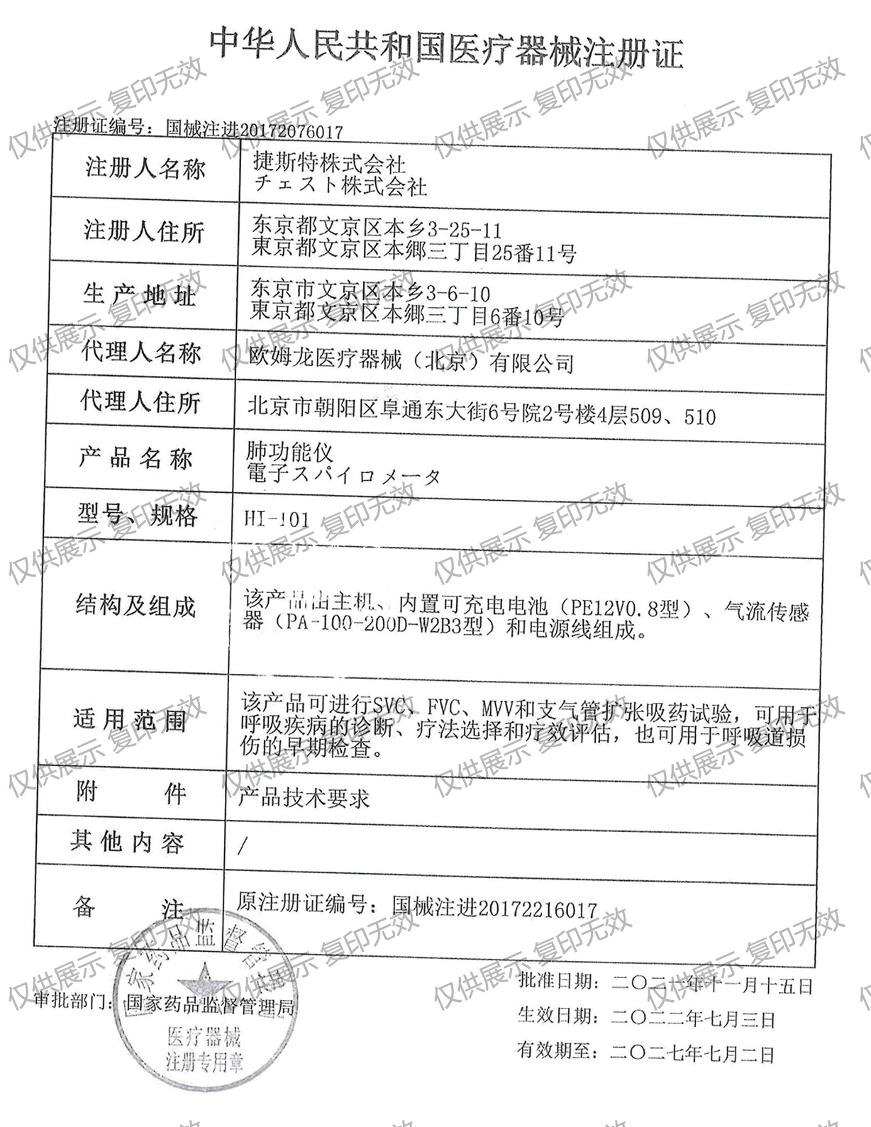 注冊證編號:國械注進20172076017